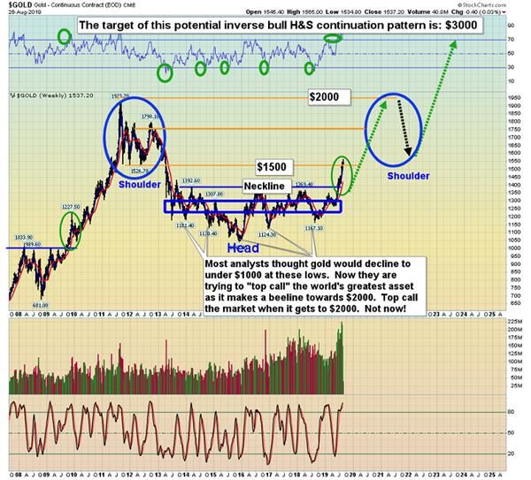 周线图上,金价形成了一个巨大的看涨头肩形态,潜在的颈线位置在2000美元区域。