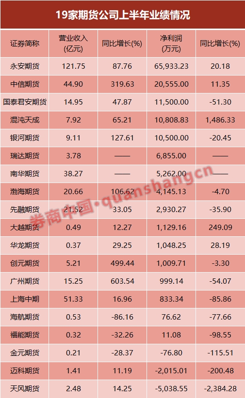 期货公司日子继续“难过”,上半年5家净利腰斩,3家亏损,永安、中信期货抢食行业一半净利。