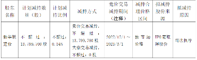 值得注意的是,本次减持属于因司法执行导致的被动减持,其股票托管的证券公司中信证券可能在减持计划公告后15个交易日内,按照法院执行裁定继续进行减持操作。