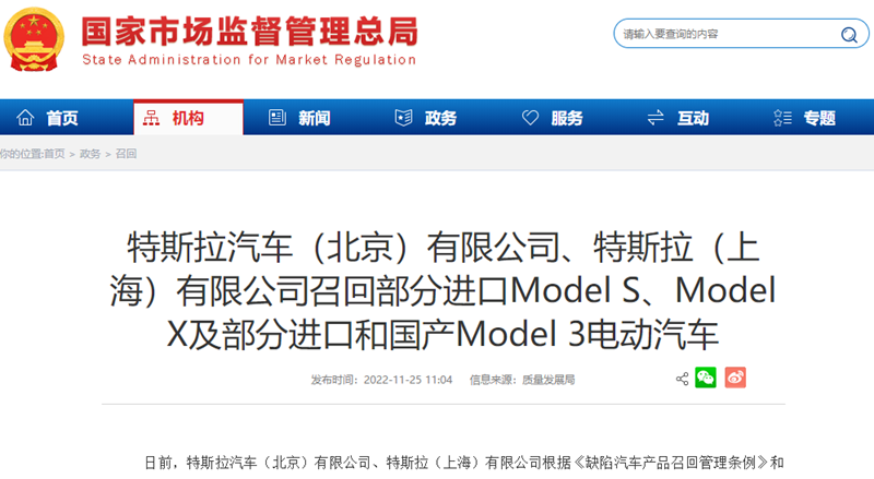 其中,此次召回的67698辆是生产日期在2013年9月25日至2020年11月21日期间的进口Model S、Model X.由于软件问题,可能出现动力电池电压感测回路反馈电压与电砖真实电压不一致,导致电池管理系统误判,车辆屏幕显示“需要维修”、“安全停靠车辆”等警示,车辆会逐步停止动力输出,极端情况下可能增加车辆发生碰撞事故的风险。特斯拉将通过汽车远程升级(OTA)解决。