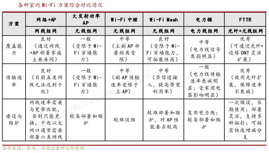 在光纤入户渗透率不断提升,光网建设加速的背景下,哪些方向有望率先受益?华西证券在研报中指出,在三大运营商业务同质化程度加大的情况下,FTTR(Fiber To The Room)方案使得部分用户痛点需求得到满足,有望成为下一代家庭宽带升级中的重要演进方向。
