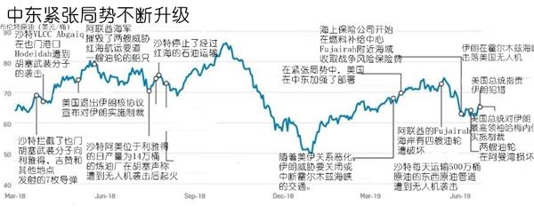 另外一个推高油价的因素就是近半年来持续紧张的中东局势,最主要的就是美国和伊朗之间的冲突,另外还有委内瑞拉的产量萎缩也影响力欧佩克的原油供应。再加上上半年以来地缘局势持续紧张,伊朗、委内瑞拉出口中断,这些供应的收紧给油价带来了强劲的支撑。此外,霍尔木兹海峡多次成为中东局势的焦点,油轮事故频发,弄得原油市场人心惶惶。从下图就可以看出中东这半年来有多乱。
