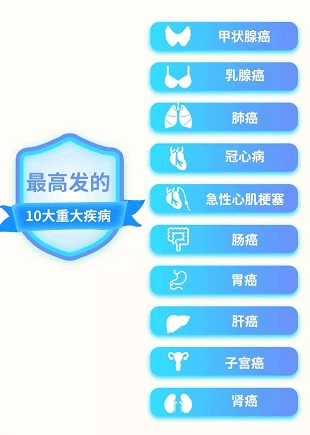 小编搜集多家保险公司2019年理赔大数据发现,癌症是最高发的重大疾病。以某保险公司公布的10大最高发重疾为例,癌症占了9种。