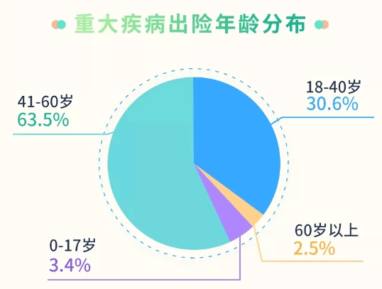 更需警惕的是,癌症等重大疾病不再是老年人的专属,年轻化趋势明显。以上述保险公司为例,这家公司的重疾理赔,91.1%发生在60岁及以下人群,41岁至60岁的中老年人群占比最高,达到63.5%。令人诧异的是,18岁至40岁的中青年人群占比高达30.6%。