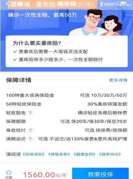 小刘说,30万保额,可以满足当前医疗费用水平下大部分重大疾病的治疗费用。即便投保人群年龄再大一点,保费也就两三千,也是少吃吃喝喝几顿就省出来了。