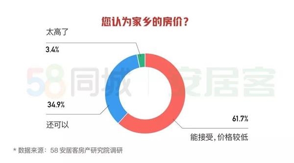 58同城、安居客调研显示,在外打拼的人群中,有61.7%的人表示家乡的房价能够接受,回乡买房的压力会更小些。