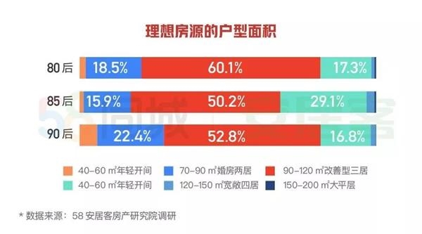 而85后(85-89年)选择回乡置业的占比为70.4%,对子女教育的关注度也较高,回乡的主要原因是“大城市教育资源紧张”,占比55.1%;房源户型方面,半数购房者都热爱三居室,但85后购房者对于四居室的关注度相对80后、90后更高。