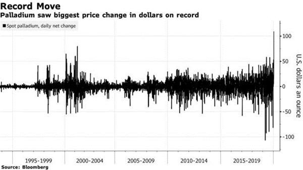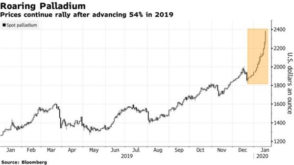 即使是经验最丰富的市场观察人士也对这种涨势感到意外。2019年,钯金的涨幅达到54%,并且每个季度都实现了上涨。
