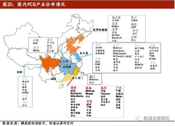 PCB产品作为基础电子元件,其产业多围绕下游产业集中地区配套建设。目前中国大陆约有一千五百家PCB企业,主要分布在珠三角、长三角和环渤海等电子行业集中度高、对基础元件需求量大并具备良好运输条件和水、电条件的区域。