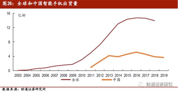 低廉的人工成本和完整的配套产业链是PCB产业向大陆转移的基础,国内消费电子市场的兴起进一步促进了国内PCB厂商的发展。自2008年开始,随着苹果手机引领的智能手机浪潮兴起,尤其是2012-2014年,智能手机进入快速渗透期,以智能手机为代表的移动终端下游需求驱动了上一轮PCB的快速增长。
