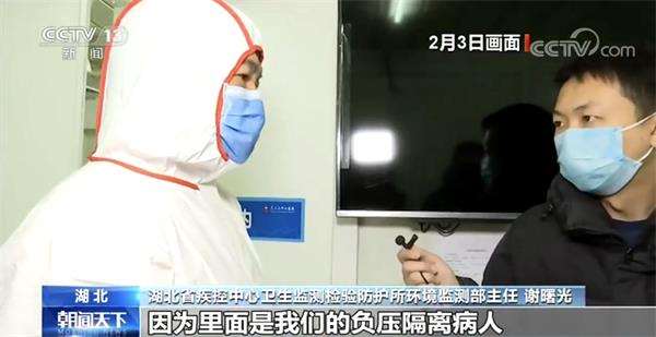 湖北省疾控中心卫生监测检验防护所环境监测部主任谢曙光:负压病房最核心的一个指标就是要保证这个房间是负压,因为里面关着的是我们的负压隔离病人,空气不要对外进行扩散。