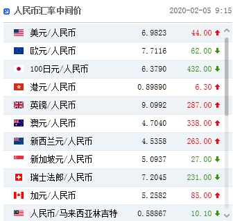 2月5日,人民币兑美元中间价调贬44个基点,报6.9823。前一交易日人民币兑美元中间价报6.9779,16:30收盘价报6.9900,23:30夜盘收报6.9982。