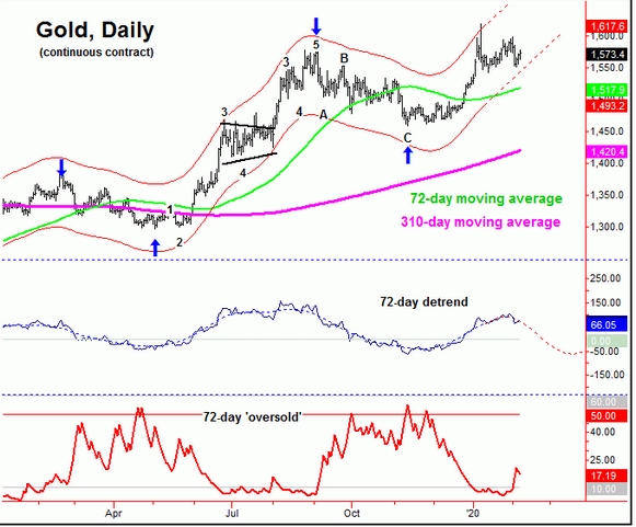 在此前的文章中,我们曾预计金价在2月下半月将出现走高行情,因更大级别的周期支持看涨走势——包括72天和154天周期。多头的目标会指向1630-1660水平,更高的水平则可以看1658-1691一线。