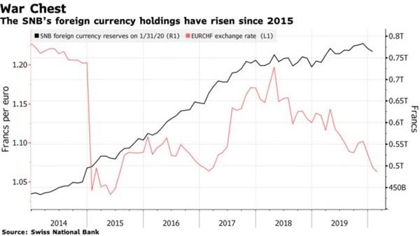 在美国看来,瑞士已经达到了成为货币操纵国的三个条件中的两个。如果它想避免激怒特朗普政府,有一个选择是抵制干预,转而降息。