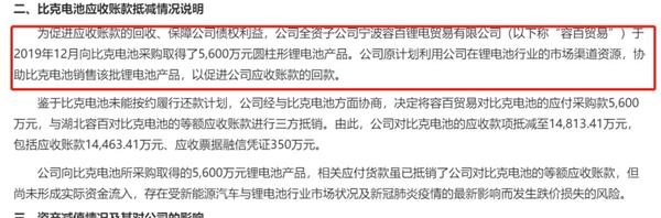 监管层对此也提出疑问,要求公司结合比克电池以物抵债的抵销方式,说明公司对比克电池剩余应收账款回收是否存在重大风险。