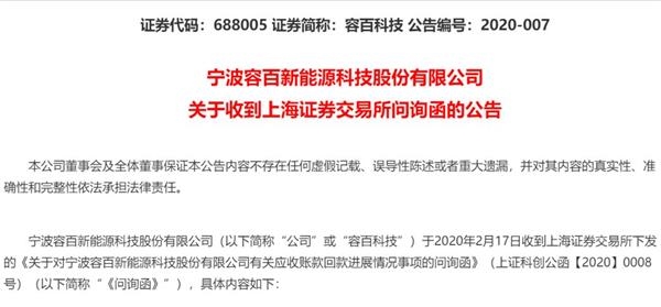 值得注意的,虽然容百科技对这5600万元的抵减进行了说明,但是仍然存在疑点,监管部门也发出了问询。2月17号当晚,紧随容百科技相关公告发布的,是上交所关于相关事项的问询函。