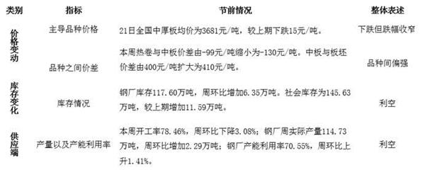 1、临近周末目前北方地区钢厂一单一议价格已经从普板锁单3350元/吨的低位回调至3550元/吨,钢厂定价快速回升有利于市场心态的进一步修复。2、虽然后续社会库存包括在途库存的基数较大,但是阶段性尚未迎来集中性增加的阶段,目前库存虽有压力但是短期还是影响的心态方面。3、产出方面本周存在波动,前几周陆续减量之后本周随着部分前期企业检修的结束以及部分钢厂铁水资源的再分配之后,产量有阶段性反弹,可能对上游减产的预期有所影响。