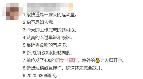 此外,疫情特殊时期,还有人在妇女节前收到“硬通货”口罩。在湖北武汉某地产咨询公司工作的李丽告诉中新经纬,3月6日她拿到了自己的妇女节慰问品:医用口罩、护目镜、一次性手套、洗手液、孕妇奶粉……