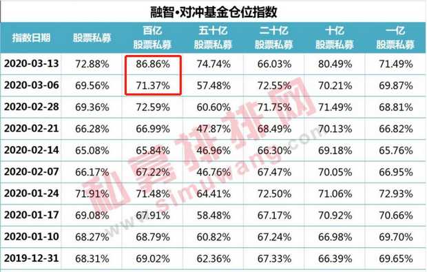 私募排排网今天公布的国内股票私募机构仓位监测数据显示,截至3月13日时(私募机构由于合规和信息披露监管等因素,净值披露较公募有较多滞后),国内百亿级股票私募在此前一周大举加仓了15.49个百分点,股票仓位由3月6日时的71.37%,大举上升至86.86%的年内新高。不过,3月13日至今,A股市场仍保持震荡走弱的行情。