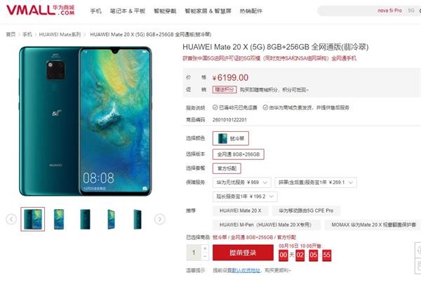 在今年7月26日,华为在深圳总部发布了这款手机,搭载了麒麟980芯片和巴龙5000芯片组,是全球首支搭载双7纳米 5G终端芯片,也是当前全球唯一一款同时支持独立组网和非独立组网的手机,支持双卡双待,产品定价为6199元。