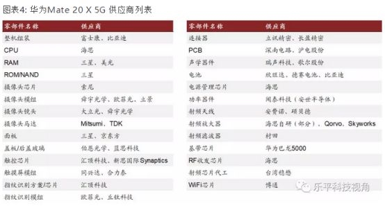 中金电子研究团队日前在报告中引用一份Mate 20X 5G供应商列表,显示了大致的供应商情况,立讯精密、汇顶科技等A股公司在列。