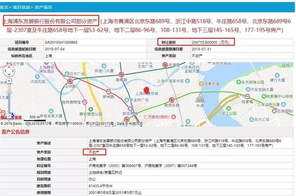 2018年12月,浦发银行再次挂牌转让14套房产,包括浦发银行总行位于上海长宁区的3套房产;浦发银行闵行支行位于上海闵行区的10套房产;以及浦发银行虹口支行的一套房产,转让底价共计6190万元。