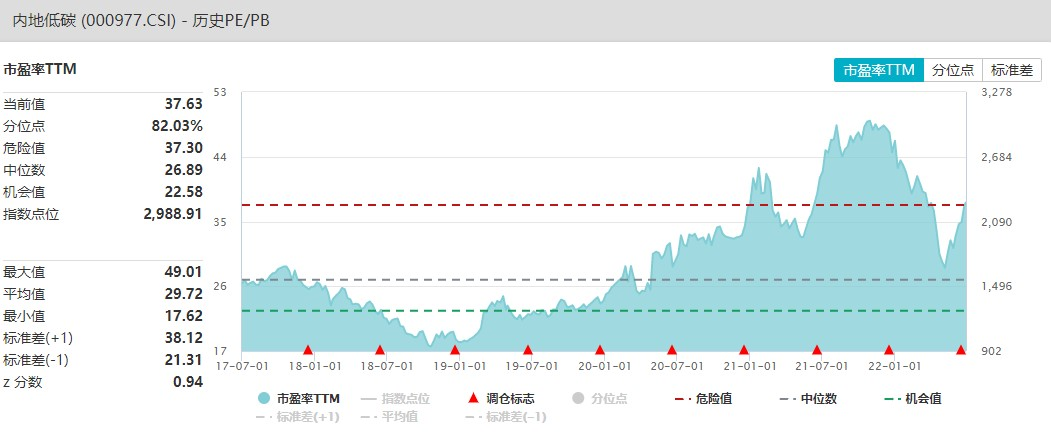 带来结果就是碳中和板块的估值明显回落,以碳中和ETF跟踪指数内地低碳指数为例,从高点49倍PE估值调整至37倍,回调幅度约25%。