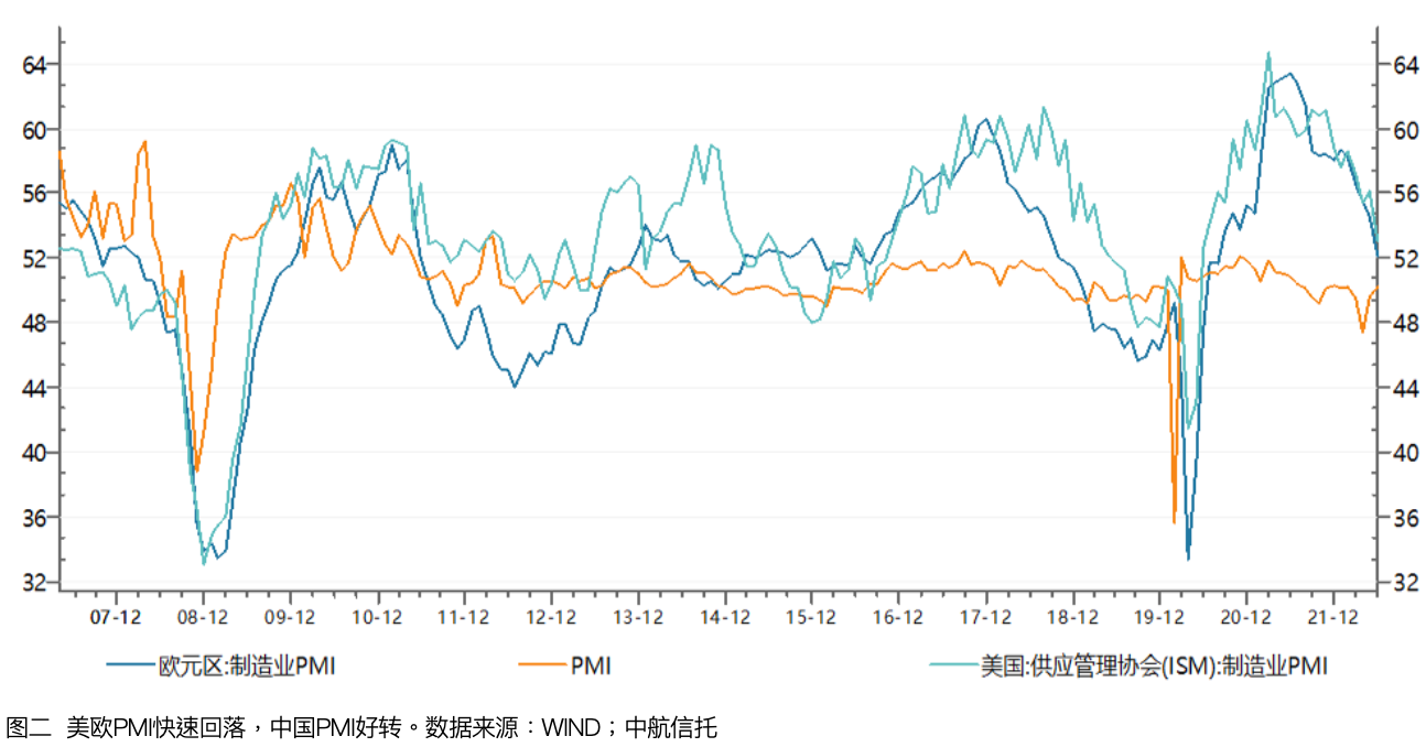 中美经济周期存在明显的不同步,背后的经济政策更是不一致,甚至出现了相反的操作。中国政策多点开花,表现积极,政府部门通过多种手段刺激经济;美国则相反,面对不断上升的通胀,美联储采取了激进的加息措施,并配以收缩资产负债表,从价和量两方面来紧缩货币。