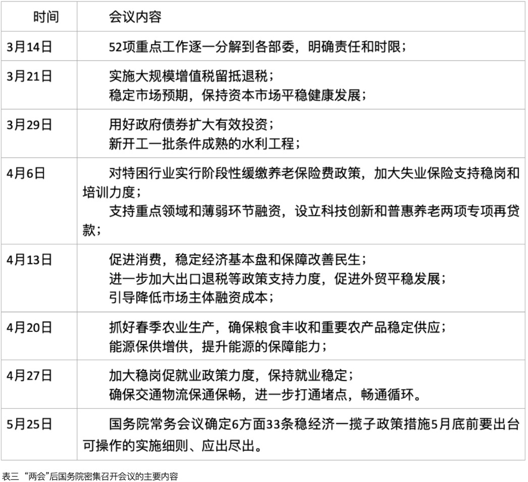 5月26日国务院召开全国稳住经济大盘电视电话会议,李克强总理要求扎实推动稳经济各项政策落地见效,保市场主体保就业保民生,确保经济运行在合理区间。两会至今,国务院已经召开14次常务会议,出台各项措施,全力稳定经济。6月27日,央行行长易纲也表示货币政策将继续从总量上发力以支持经济复苏,同时强调用好支持中小企业和绿色转型等结构性货币政策工具。