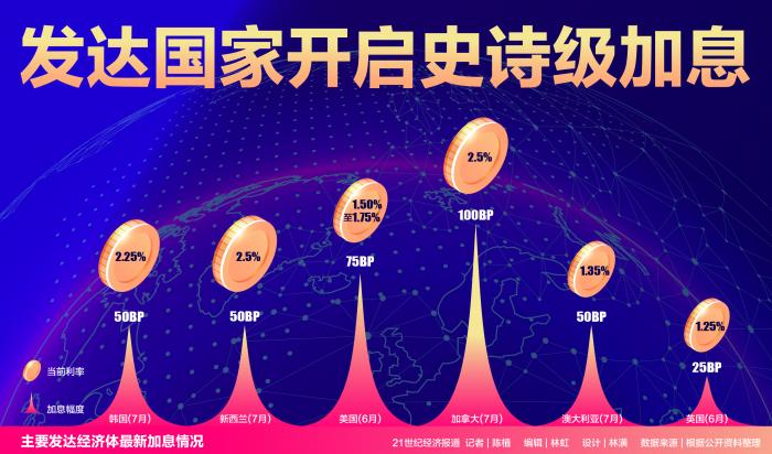 在高通胀压力迫使美联储加息幅度日益“激进”的情况下,越来越多发达国家也开启跟随大幅度加息的征途。