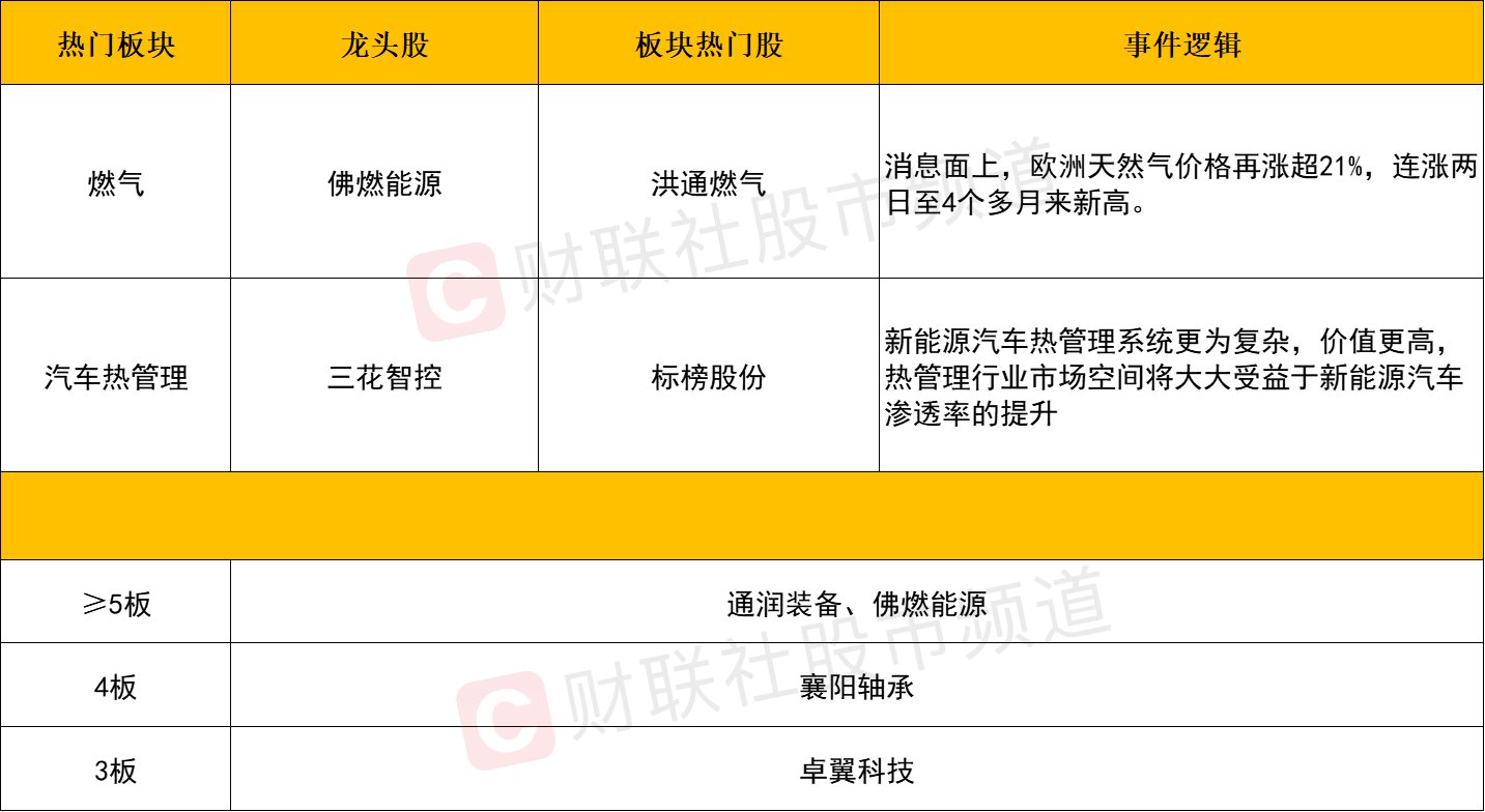 汽车零部件方向全天强势,汽车热管理与一体化压铸方向两大细分领域均涨幅居前。其中短线龙头襄阳轴承再度顶一字晋级4板,千亿市值龙头三花智控涨停创阶段新高,此外,汉宇集团、威唐工业、恒帅股份、伊之密等涨超10%,汇得科技、飞龙股份、银轮股份、嵘泰股份等个股涨停。