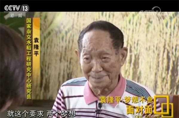 袁隆平:对自己没有要求,就是这个要求:一个是“禾下乘凉梦”,一个“覆盖全球梦”,杂交稻。就这个要求,两个梦想。