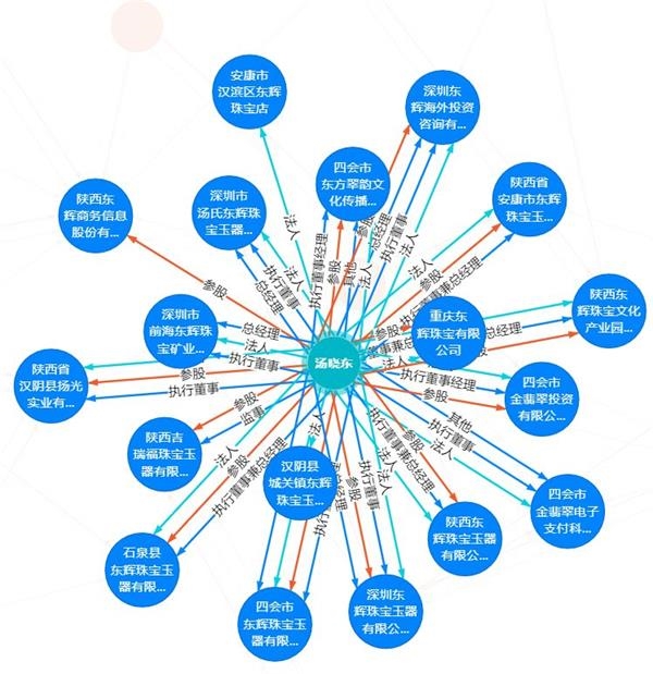 天眼查数据显示,汤晓东旗下共有18家企业,大多数于“东辉珠宝”有管关,这些公司主要进行珠宝、玉器的销售,注册地址分布在广东、陕西、重庆三地。