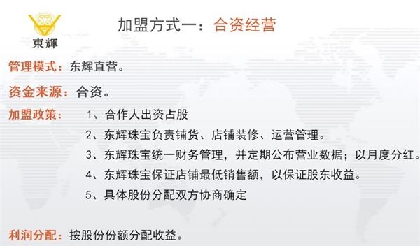 从此前东辉珠宝招商加盟项目简介的ppt来看,主要有3种加盟方式: