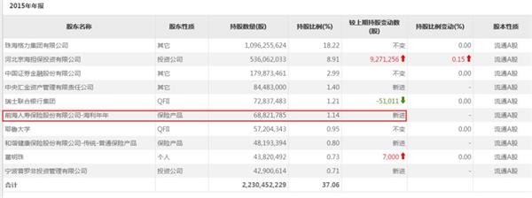 时间来到2015年,前海人寿以1.14%的持股比例首次跻身格力的前十大股东。