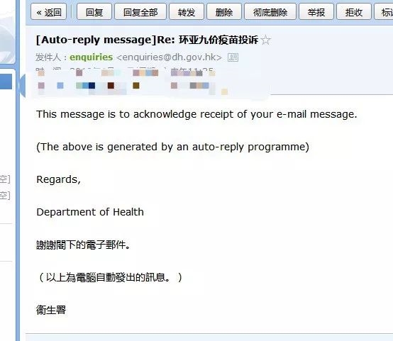 “丰台工商局今天给予了我反馈,明天会约谈我预约的中介平台。除此之外,我们还向香港海关、卫生署、消费署、蒋丽云议员等处发去投诉邮件,据说7月1日卫生署才出针剂调查结果。但是根据香港的清算规则,我们消费者的损失是在最后弥补,那时候往往就会不了了之。目前我们的诉求就是环亚尽快赔偿我们广大受害者的经济损失,若官方调查结果显示针剂有问题,那就涉及人命官司了。”张女士对记者说道。
