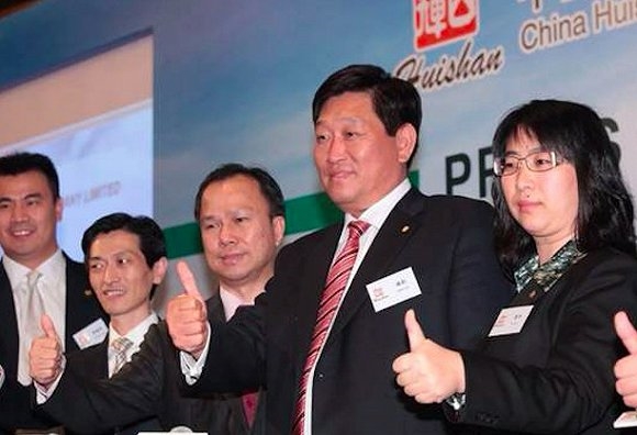 辉山在香港上市。右二为杨凯,右一为葛坤。图片来自网络。