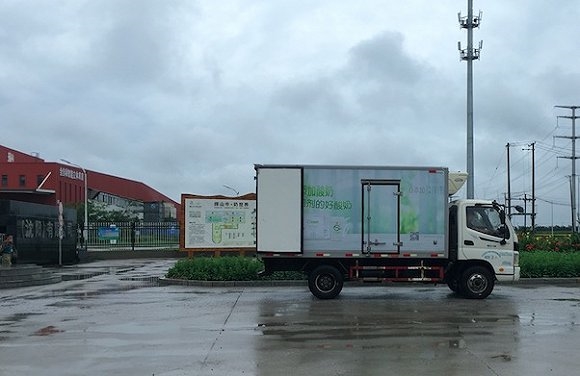 印着辉山酸奶广告的货车,从辉山沈北新区工厂开出。摄影:赵晓娟