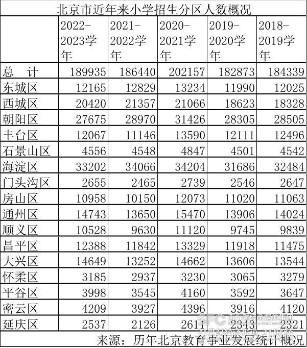 然而,在2022-2023学年,东城、西城、海淀、朝阳的小学招生人数全部负增长,分别比上年减少664、937、864、1295人。
