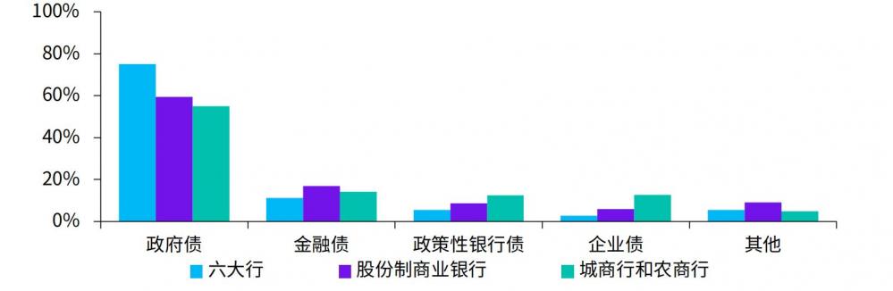 政府债中六大国有商业银行占比最高,而金融债、政策性银行债和企业债中,城商行和农商行占比最高。